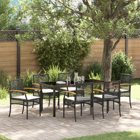 Teljes vidaXL 7 Részes Kert Étkező Szett Párnákkal Fekete Poli Rattan termékleírás