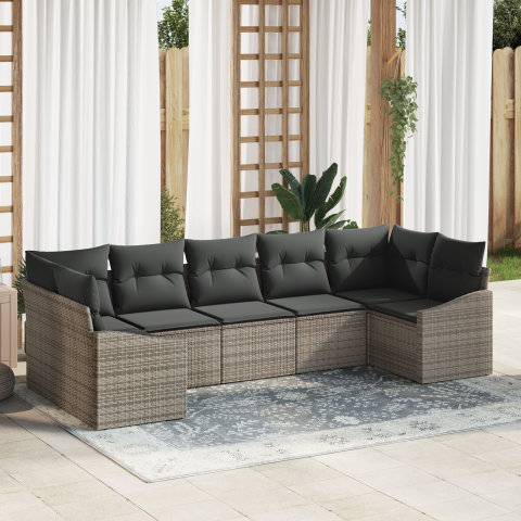 vidaXL 7 Részes Kerti Étkező Szett Párnákkal Szürke Poli Rattan kerti bútor termékleírás