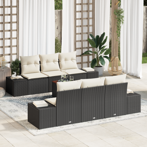 Teljes vidaXL 7 részes kertibútor szett párnákkal, fekete polirattan akáccal termékleírás