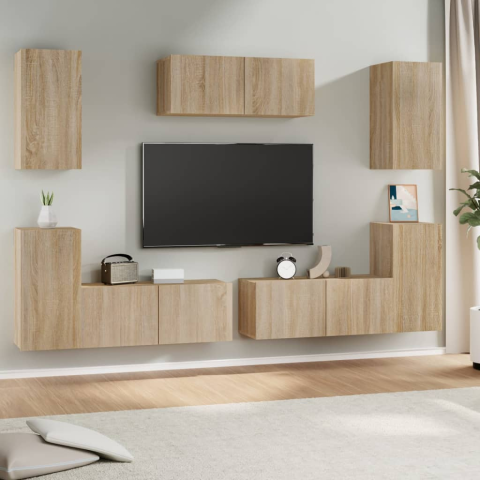 Teljes vidaXL 7 részes sonoma tölgyszínű szerelt fa TV-szekrényszett termékleírás