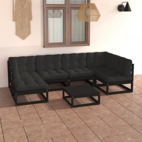 Teljes vidaXL 7 részes tömör fenyőfa kerti ülőgarnitúra párnákkal termékleírás