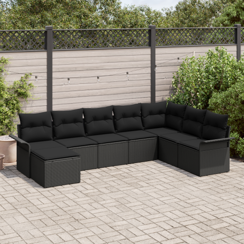 Teljes vidaXL 8 darabos kert kanapé szett párnákkal fekete poli rattan termékleírás