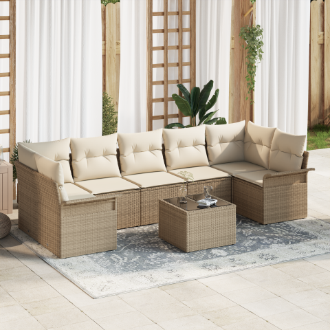 Teljes vidaXL 8 darabos Kerti Kanapé Szett Párnákkal Bézs Poli Rattan termékleírás