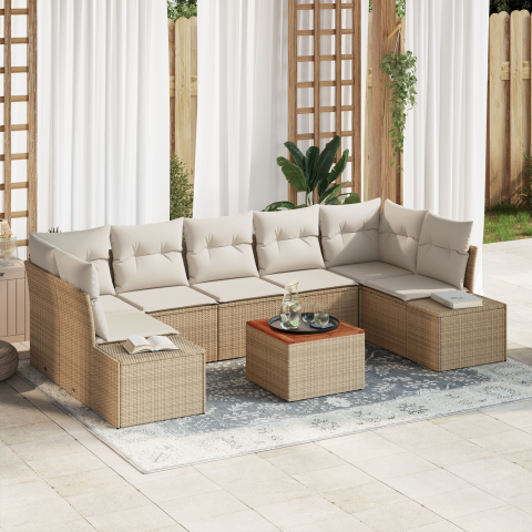 Teljes vidaXL 8 darabos kerti kanapé szett párnákkal Bézs Poli Rattan Akácia termékleírás
