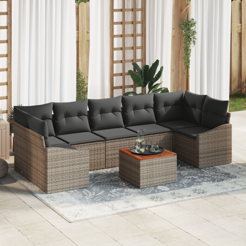 Teljes vidaXL 8 Darabos Kerti Kanapé Szett Párnákkal Szürke Poli Rattan Akác termékleírás