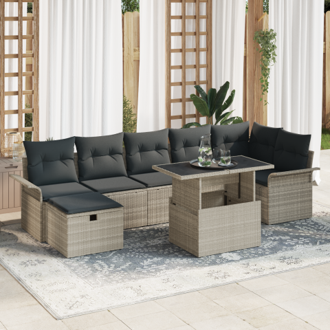 Teljes vidaXL 8 darabos kerti kanapé szett párnákkal világosszürke poli rattan termékleírás