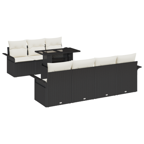 vidaXL 8 Darabos Kerti Kanapészett Párnával Fekete Polirattan (3348223)