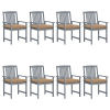 1 kép vidaXL 8 db szürke tömör akácfa kerti szék párnákkal