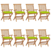 1 kép vidaXL 8 db tömör tíkfa kerti szék élénkzöld párnával