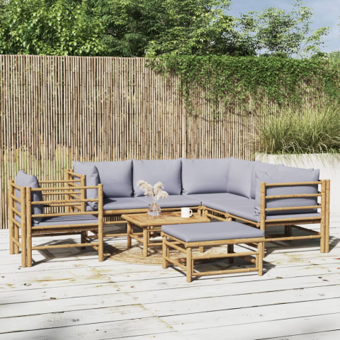1 kép vidaXL 8 részes bambusz kerti ülőgarnitúra világosszürke párnákkal