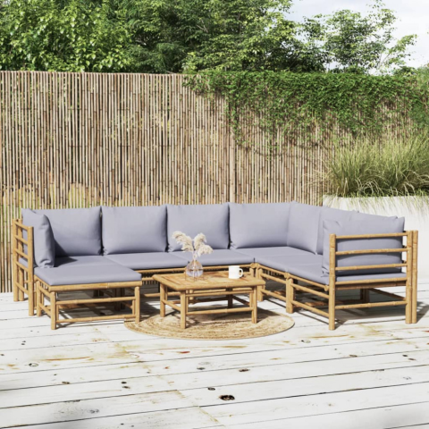 1 kép vidaXL 8 részes bambusz kerti ülőgarnitúra világosszürke párnákkal