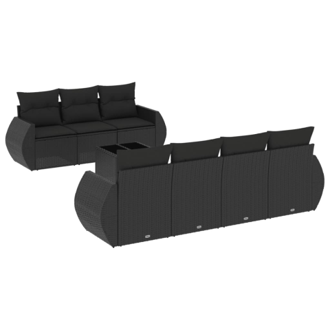 vidaXL 8 részes fekete polyrattan kerti ülőgarnitúra párnákkal (3253462)