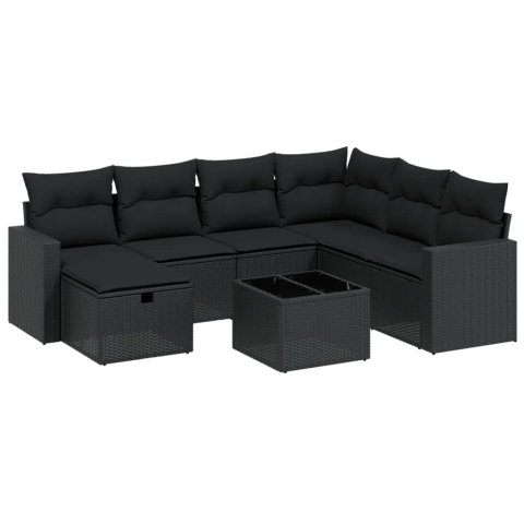 vidaXL 8 részes fekete polyrattan kerti ülőgarnitúra párnákkal (3263531)