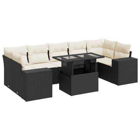 Teljes vidaXL 8 részes fekete polyrattan kerti ülőgarnitúra párnákkal (3326757) termékleírás