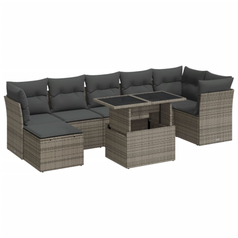 vidaXL 8 részes szürke polyrattan kerti ülőgarnitúra párnákkal (3326201)