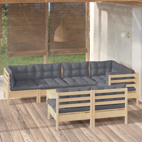 1 kép vidaXL 8 részes tömör fenyőfa kerti ülőgarnitúra szürke párnákkal