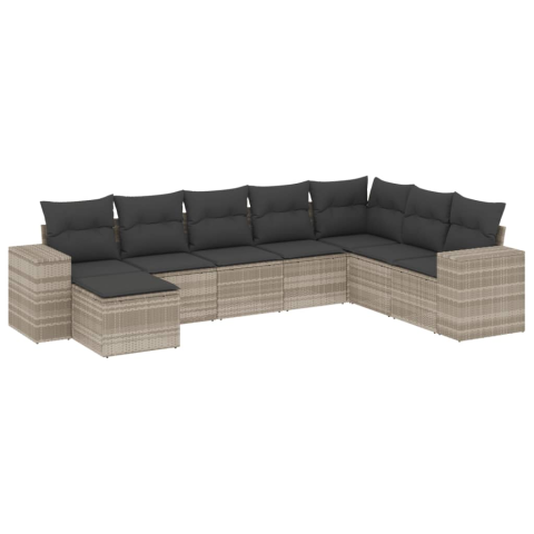 1 kép vidaXL 8 részes világosszürke polyrattan kerti ülőgarnitúra párnával (3222961)