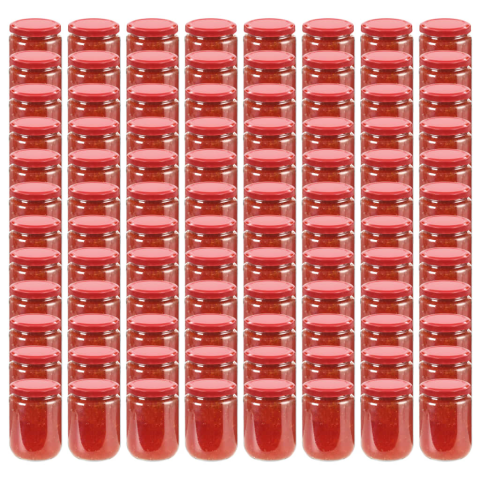 vidaXL 96 db 230 ml-es befőttesüveg piros tetővel papírárú, csomagoló és tárolóeszköz 1 kép