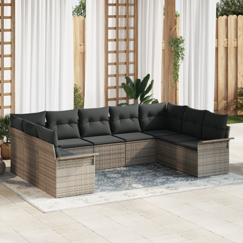 Teljes vidaXL 9 Darabos Kert Kanapé Szett Párnákkal Szürke Poli Rattan termékleírás