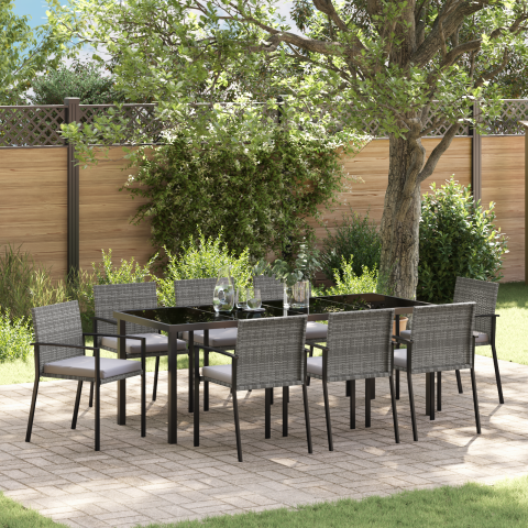 vidaXL 9 darabos kerti étkező szett szürke poli rattan kerti bútor termékleírás