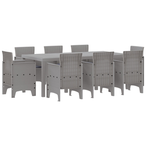 1 kép vidaXL 9 Darabos Kerti Étkezőszett Párnákkal Világosszürke Polirattan (3378590)