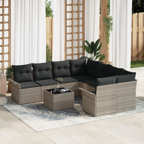 Teljes vidaXL 9 darabos kerti kanapé szett párnákkal világosszürke poli rattan termékleírás