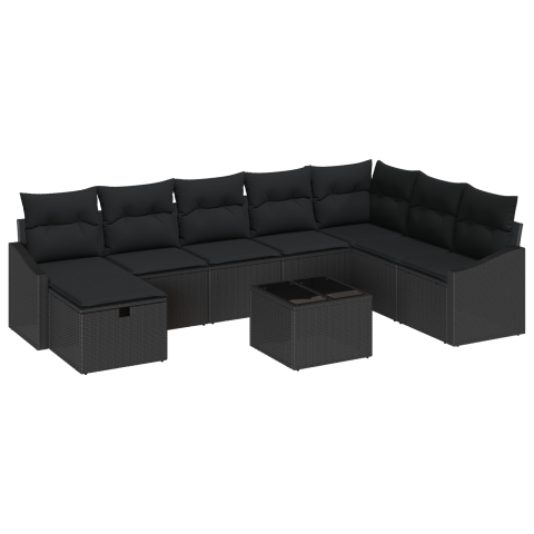 1 kép vidaXL 9 darabos kerti kanapészett párnákkal fekete poli rattanból (3359342)