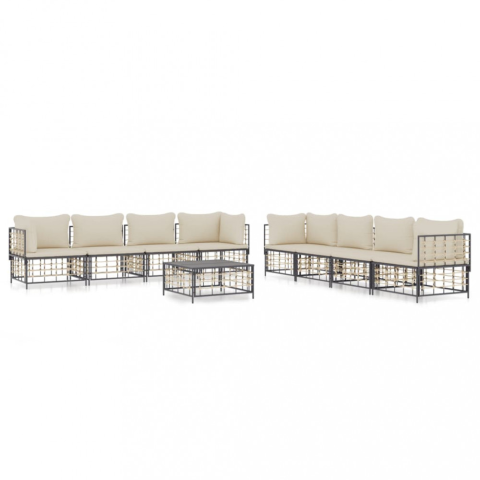 5 kép vidaXL 9-részes antracitszürke polyrattan kerti ülőgarnitúra párnákkal