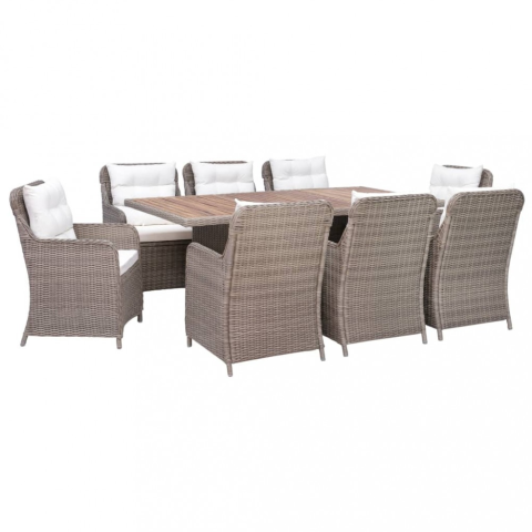 Teljes vidaXL 9 részes barna kültéri polyrattan étkezőgarnitúra párnákkal termékleírás