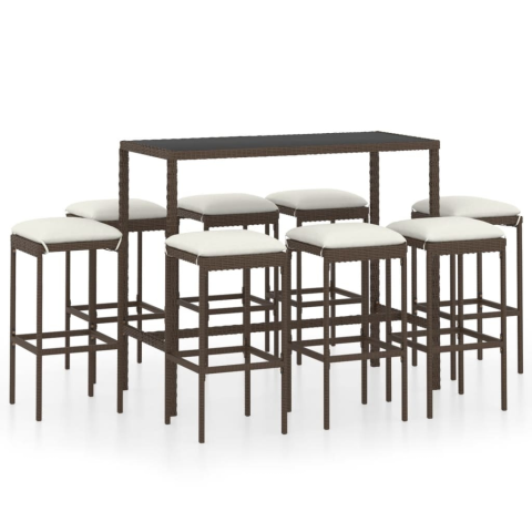 Teljes vidaXL 9 részes barna polyrattan kerti bárszett párnákkal termékleírás