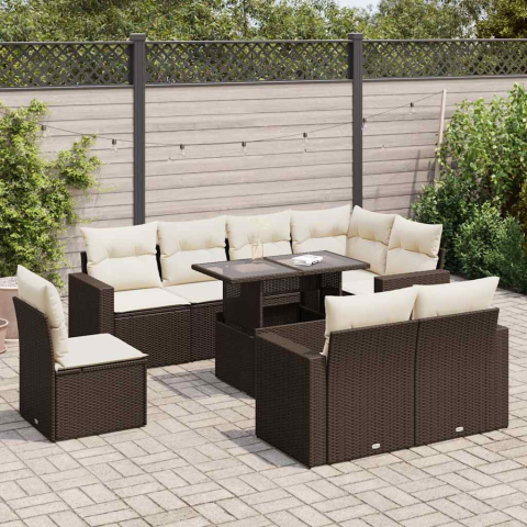 1 kép vidaXL 9 részes barna polyrattan kerti ülőgarnitúra párnákkal
