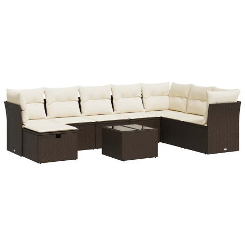 Teljes vidaXL 9 részes barna polyrattan kerti ülőgarnitúra párnákkal (3325349) termékleírás