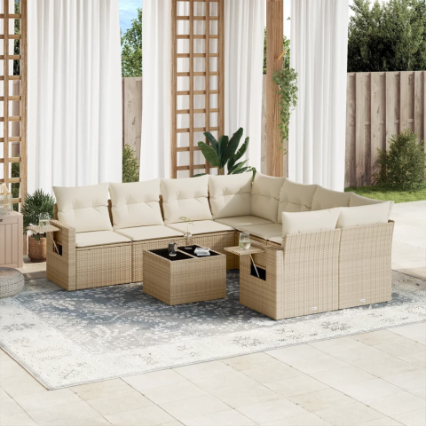 1 kép vidaXL 9-részes bézs polyrattan kerti ülőgarnitúra párnákkal