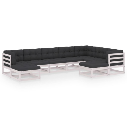 Teljes vidaXL 9 részes fehér tömör fenyőfa kerti ülőgarnitúra párnákkal termékleírás