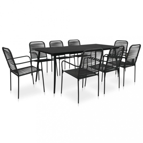 1 kép vidaXL 9 részes fekete pamutkötél és acél kerti étkezőgarnitúra