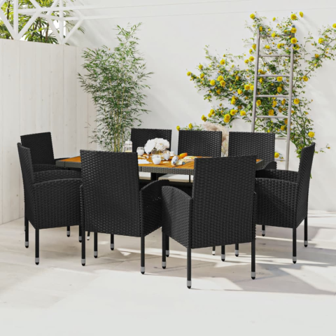 Teljes vidaXL 9 részes fekete polirattan kültéri étkezőgarnitúra termékleírás
