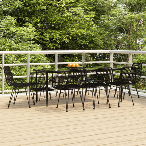 vidaXL 9 részes fekete polyrattan kerti étkezőgarnitúra kerti bútor termékleírás