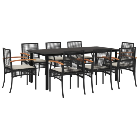 Teljes vidaXL 9 részes fekete polyrattan kerti étkezőgarnitúra párnákkal (3213609) termékleírás