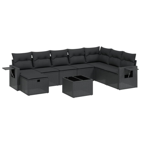 vidaXL 9 részes fekete polyrattan kerti ülőgarnitúra párnákkal (3263901) kerti bútor 1 kép