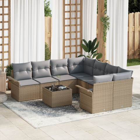 Teljes vidaXL 9 részes Kerti Sofa Készlet Párnákkal Bézs Polirattan termékleírás