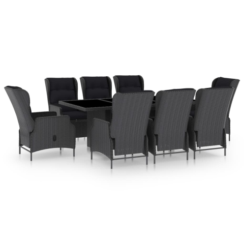 Teljes vidaXL 9 részes sötétszürke polyrattan kültéri étkezőszett párnákkal termékleírás