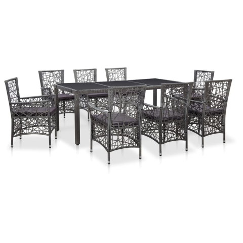 Teljes vidaXL 9 részes szürke kültéri polyrattan étkezőgarnitúra termékleírás