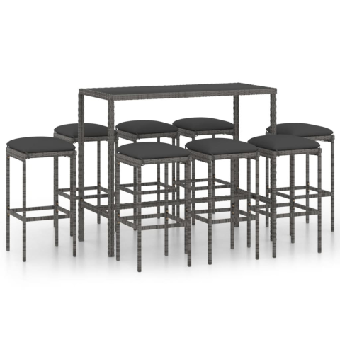 Teljes vidaXL 9 részes szürke polyrattan kerti bárszett párnákkal termékleírás
