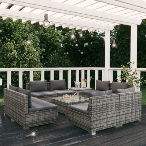 Teljes vidaXL 9 részes szürke polyrattan kerti ülőgarnitúra párnákkal termékleírás