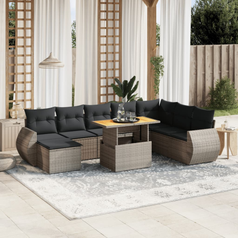 Teljes vidaXL 9 részes szürke polyrattan kerti ülőgarnitúra párnákkal termékleírás