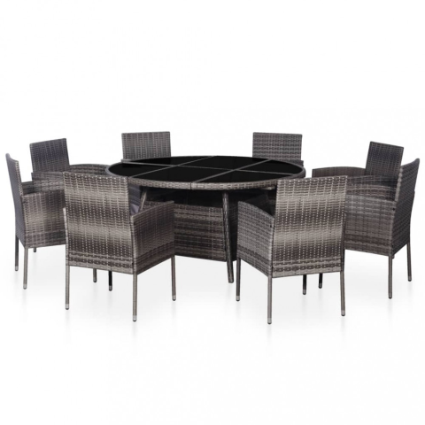 Teljes vidaXL 9-részes szürke polyrattan kültéri étkezőszett párnákkal termékleírás