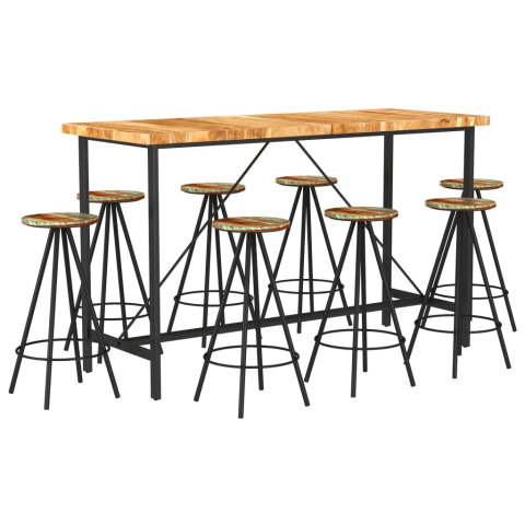 Teljes vidaXL 9 részes tömör akácfa és újrahasznosított fa bárszett termékleírás