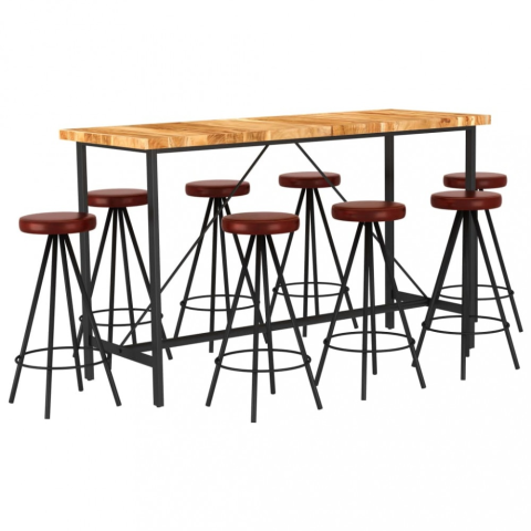 Teljes vidaXL 9 részes tömör akácfa/valódi bőr bárszett termékleírás