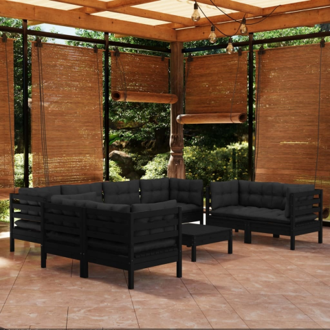 Teljes vidaXL 9 részes tömör fenyőfa kerti ülőgarnitúra párnákkal termékleírás