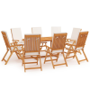 Teljes vidaXL 9 részes tömör tíkfa kerti étkezőgarnitúra párnákkal termékleírás